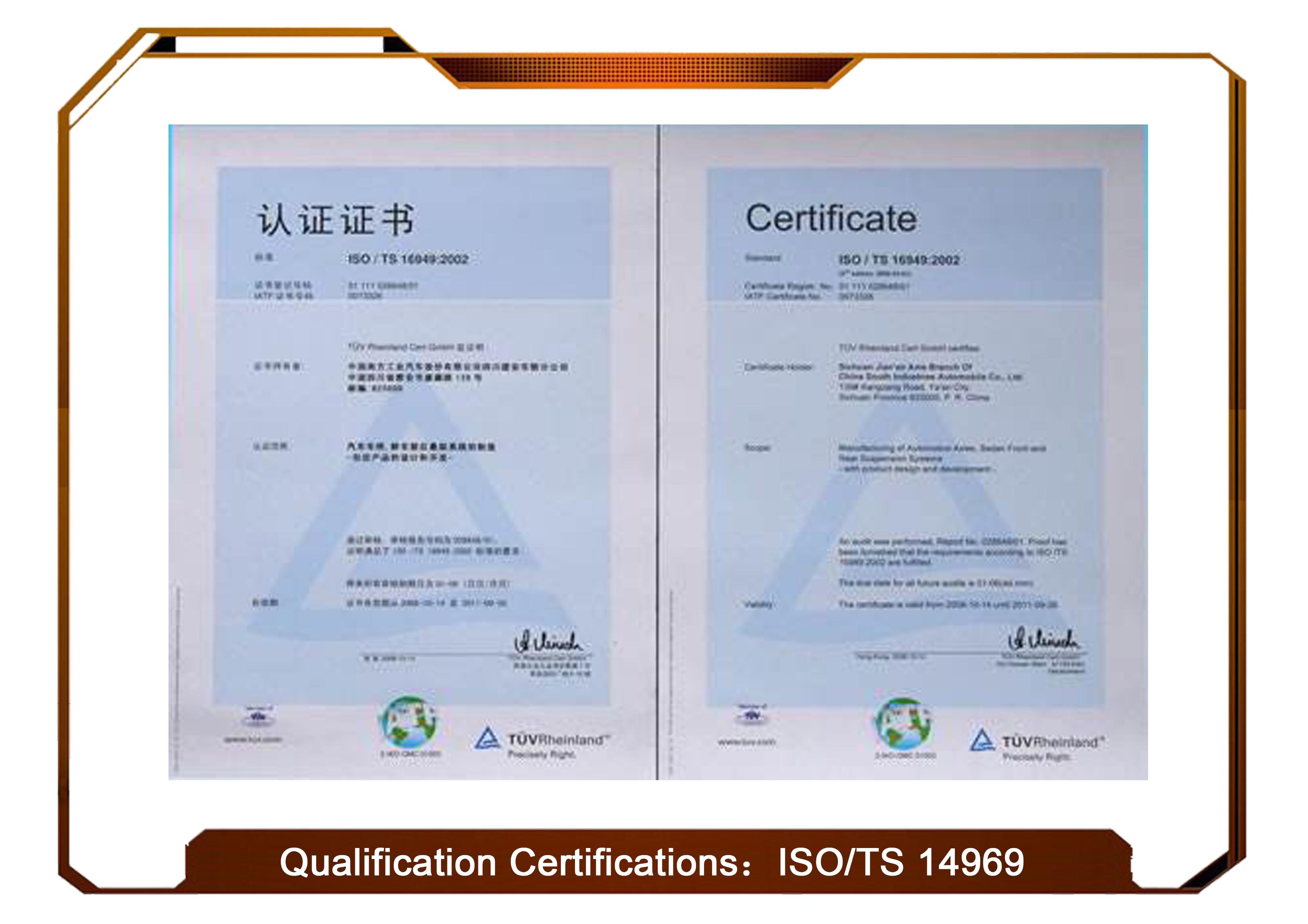 certification, ISO14001, ISO/TS 14969 certification, Special Equipment Manufacturing